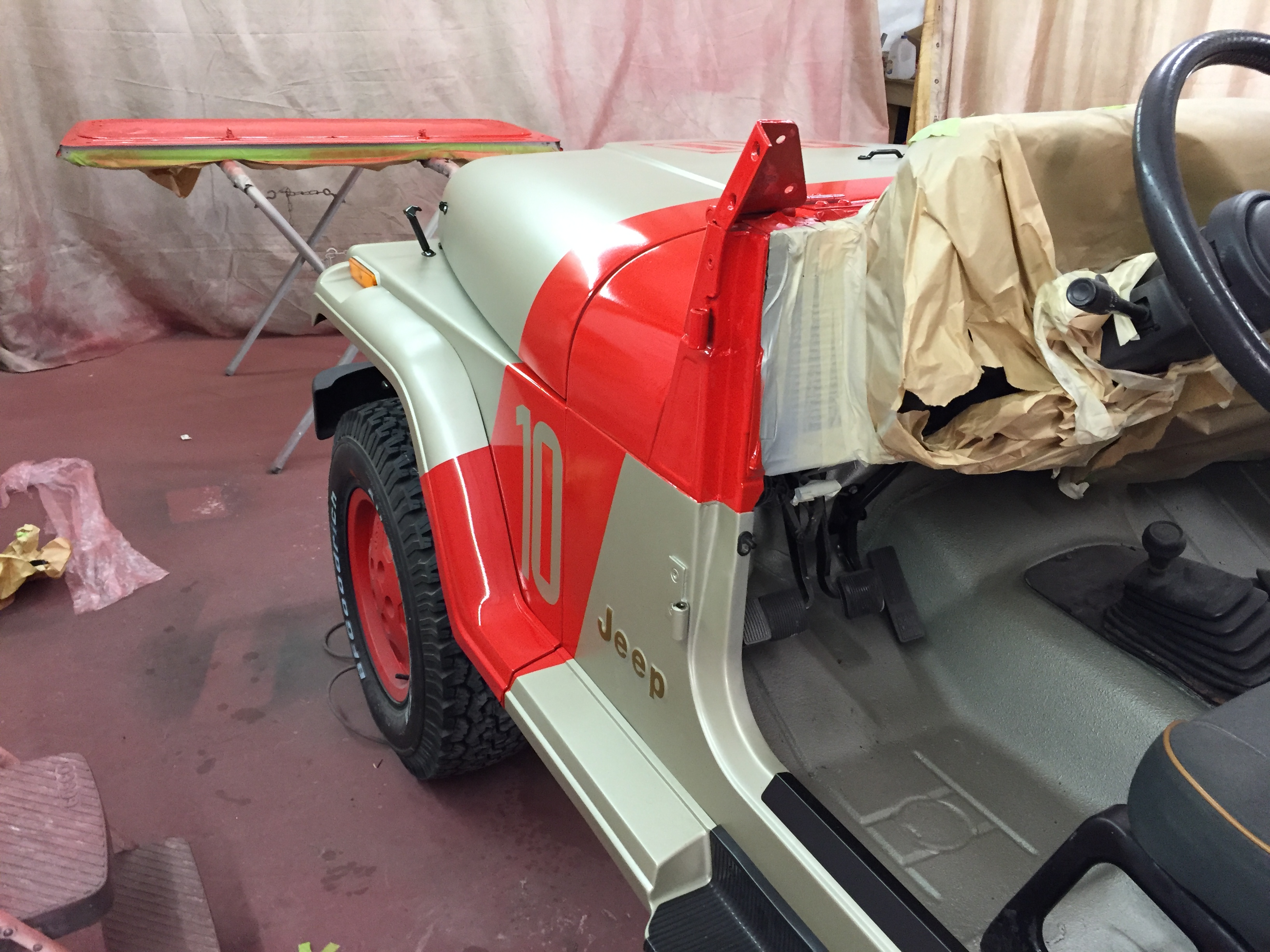 The next step is the jeep gets reassembled prior to mocking up the stripes