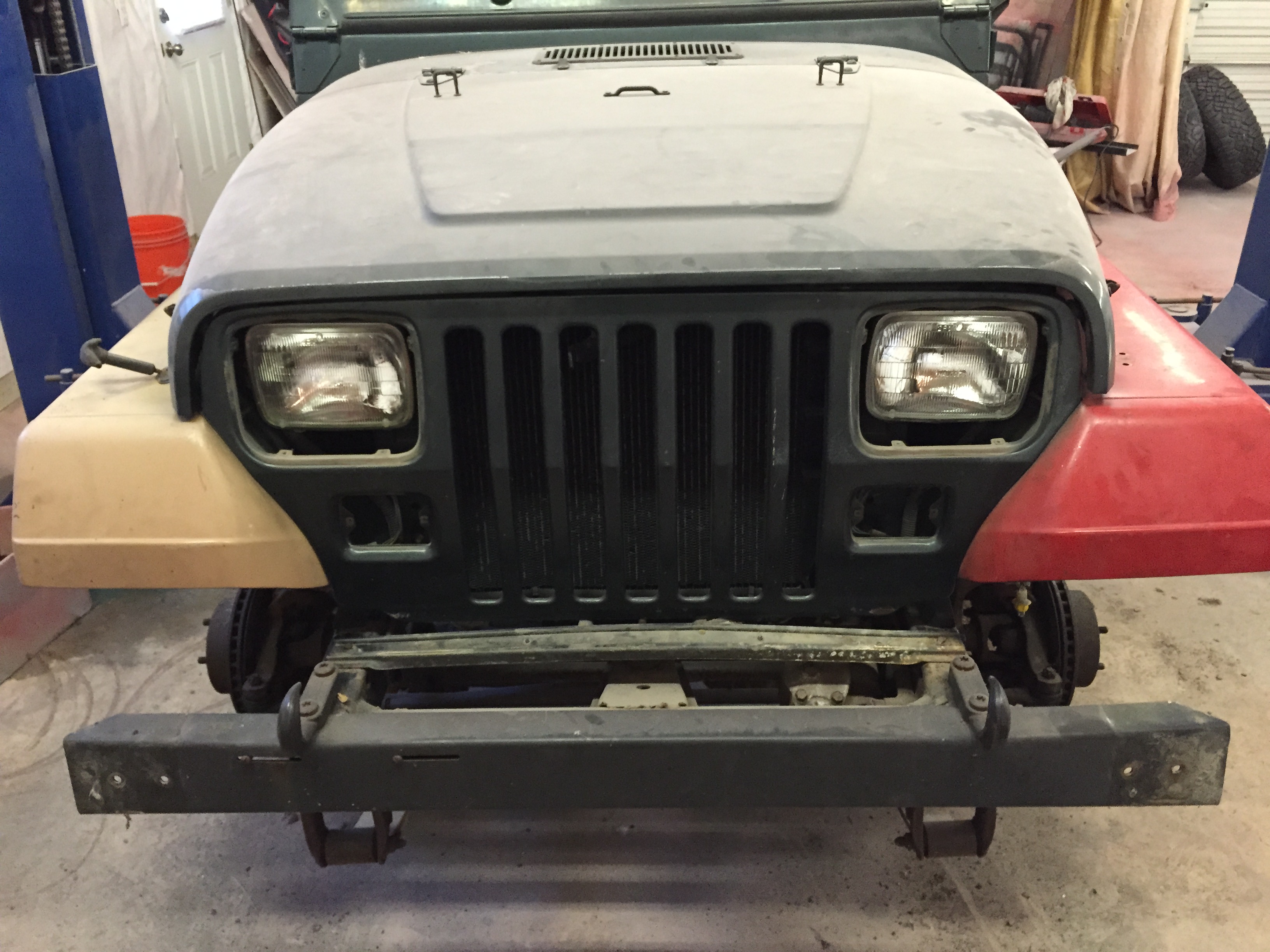 The body overall was in good shape but the paint was worn and peeling, Jeep was sanded all dents removed and primed for block sanding including doors