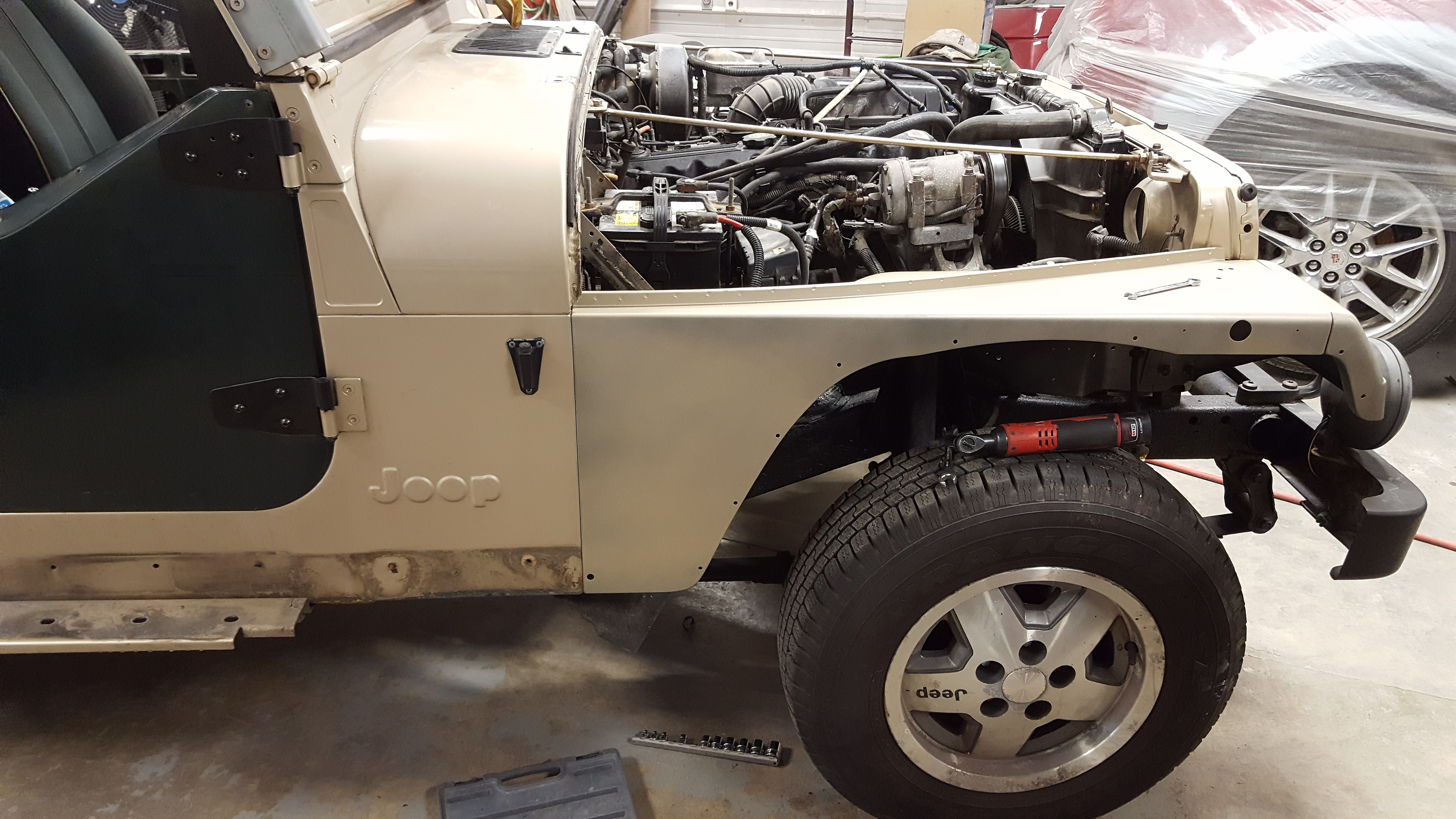 Well I hope you get to feeling better. I thought I would put a couple more pics. We got a really good project Jeep, so we only had to do a little body work and replace the fenders. I did notice something though, I have a Joop. I am assuming quite a few guys have Joops instead of Jeeps. I have read many forums regarding this, but I still think its humorous.