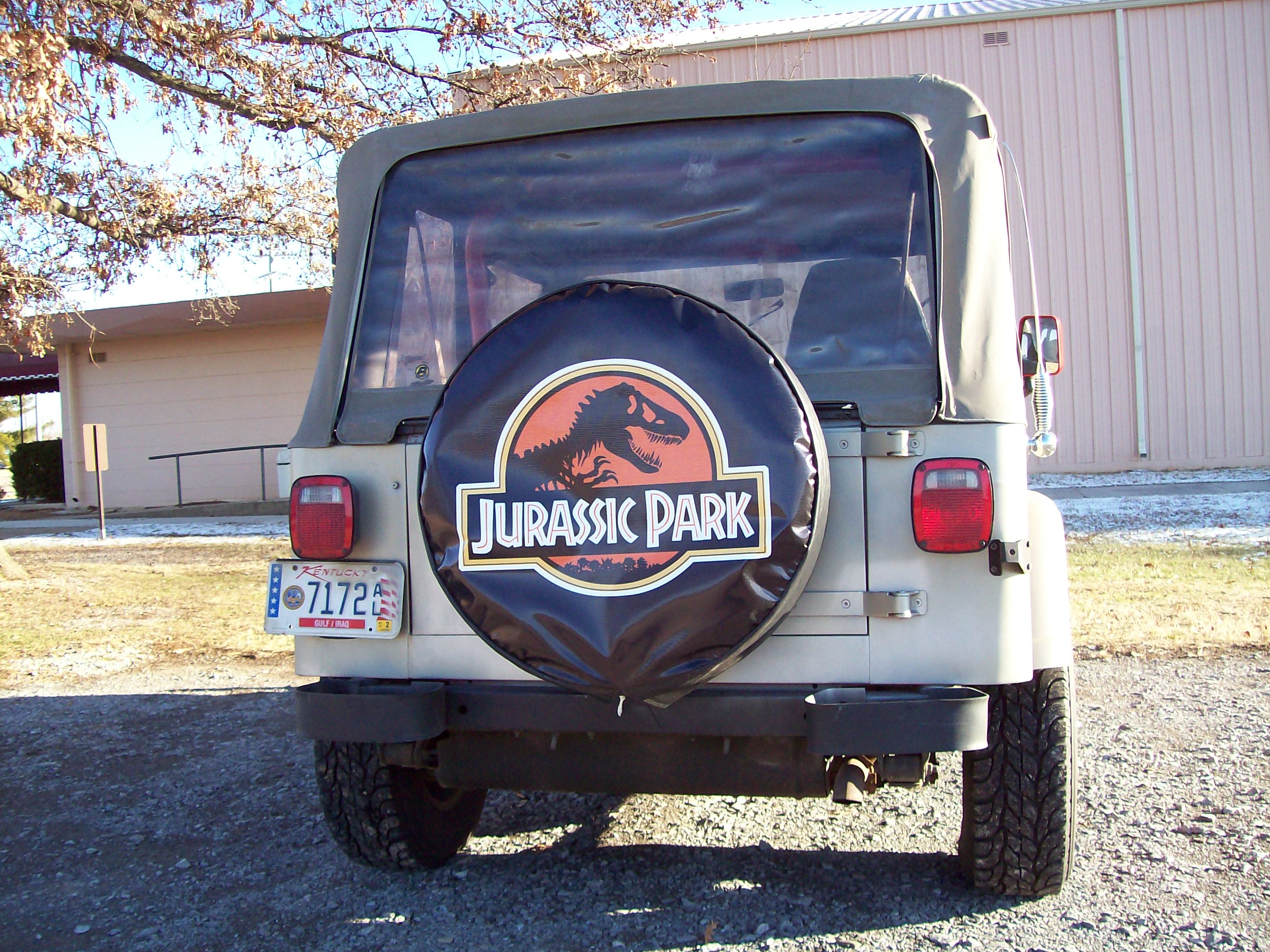 I know it isn't canon, but I also added a JP tire cover, for every day use, though not for movie prop displays. For displays the roll bar will also be removed to make this a screen-accuate Jeep # 10.