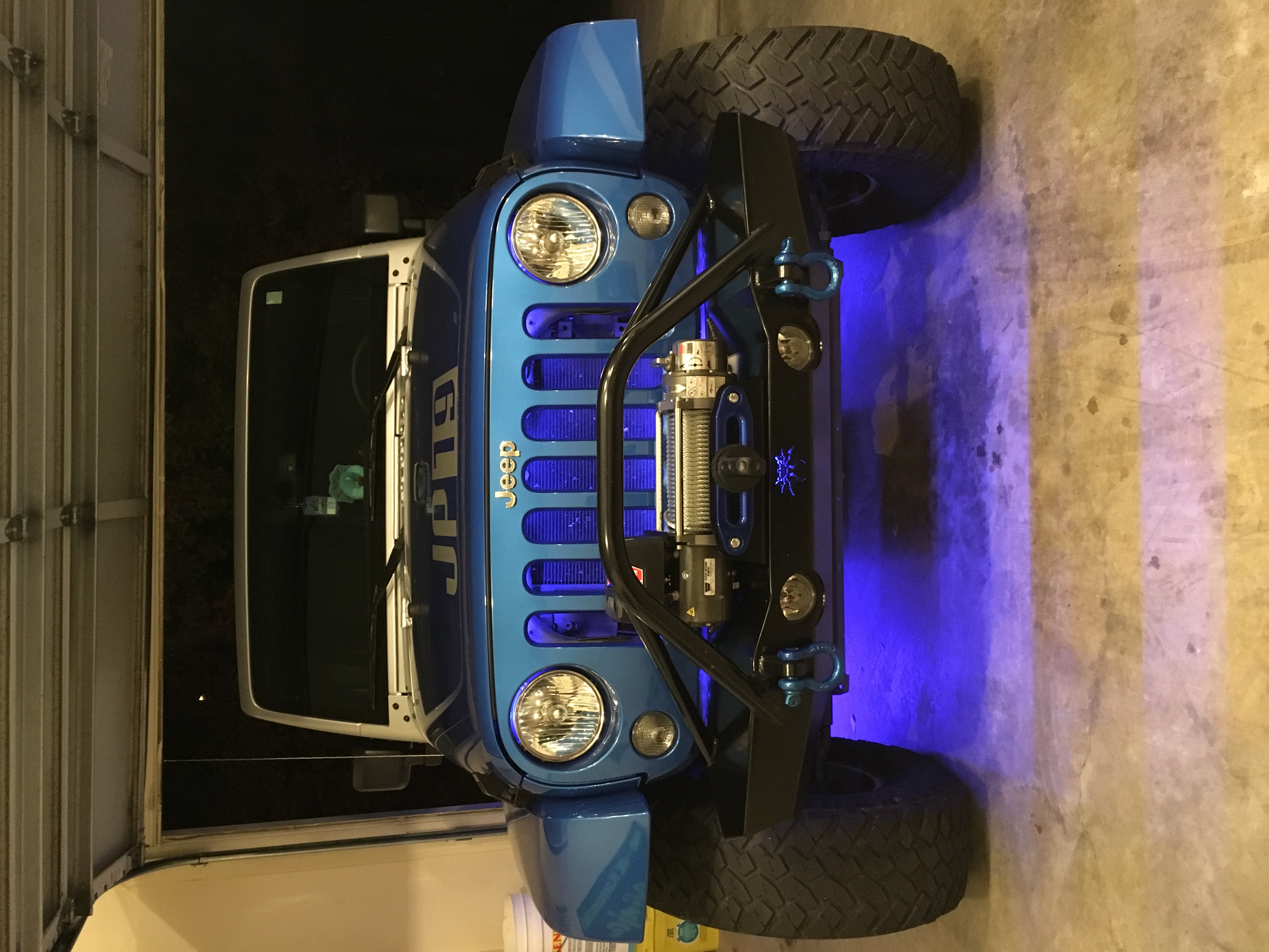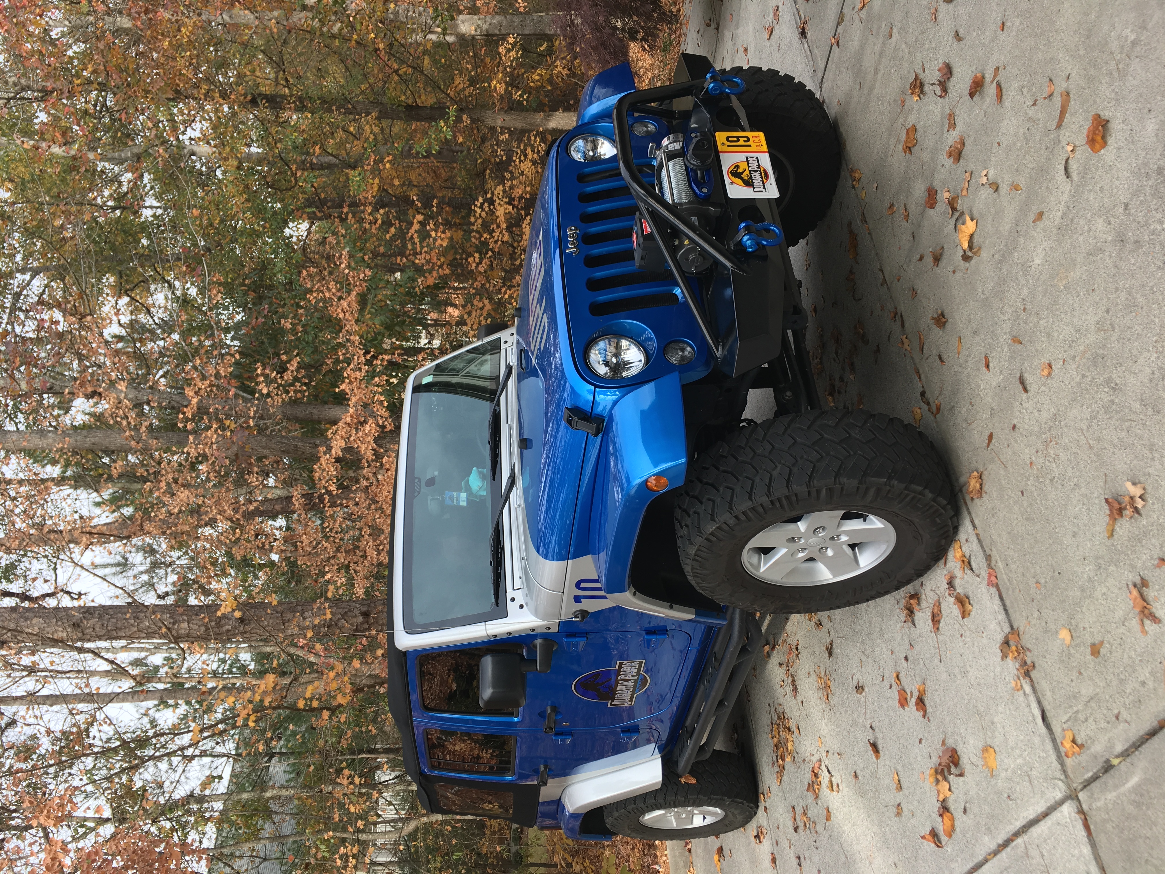 One of the first things I wanted to do was color matched fender flares. After many phone calls about painting the stock ones, I realized that finding a used takeoff set already painted was the best route. So, the searching began and after a few I found a basically brand new hydro blue oem set. They came off a 2015 rubicon that was getting flat fenders. I was able to get all 4 for 200.00! After a couple hour drive she had new flares. I dropped them off at the wrapper and installed them a week or so later.