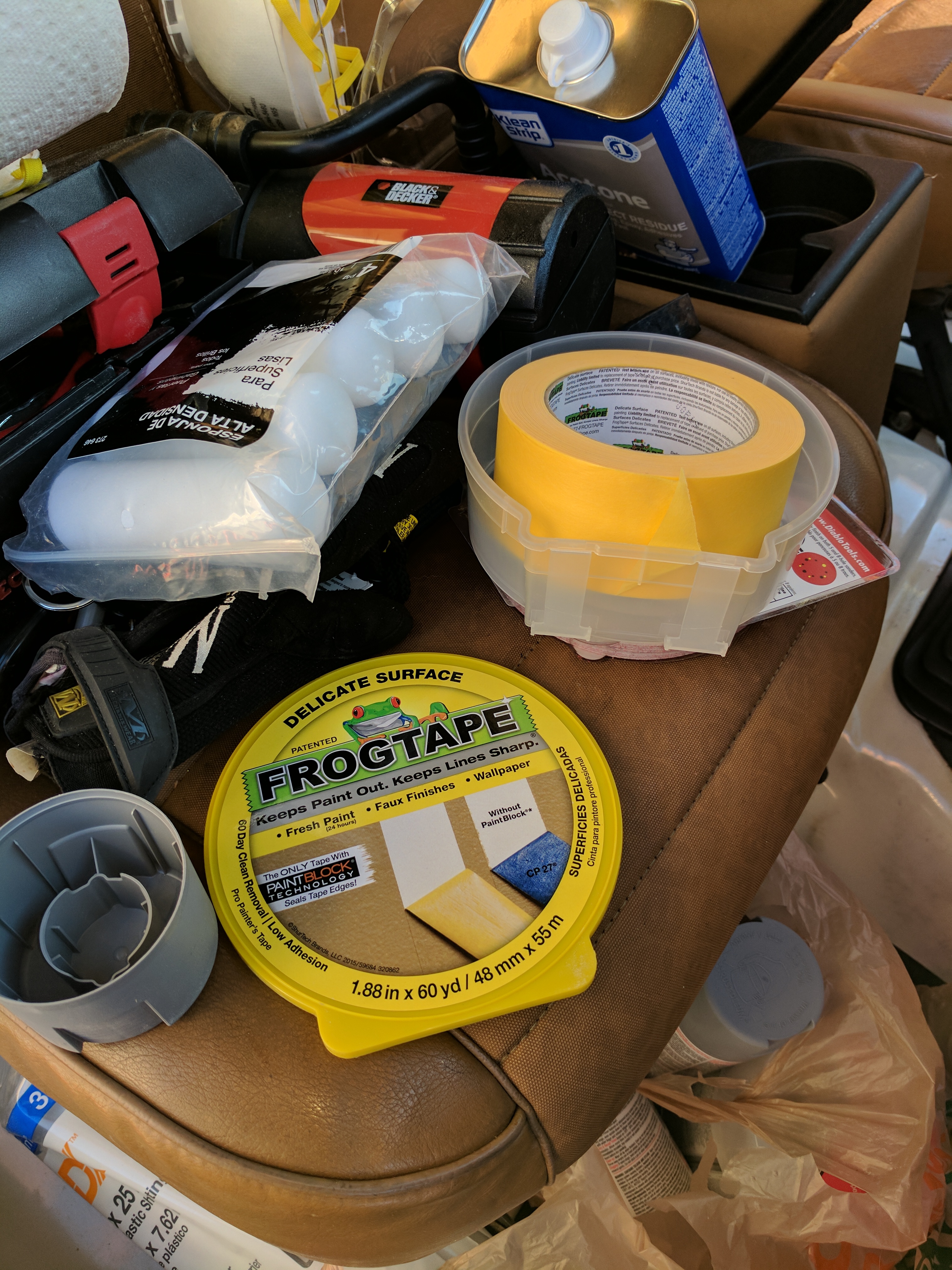 I was able to remove, sand, and prime the doors today. It took two coats of primer spray to make an even coat. I was able to talk my better half into going to home depot to get Paint, Primer, Sanding Circles for my sander, and some necessary tapes and plastic... I was also able to pick up some speakers for cheap, and a new horn at a pickNpull type place.