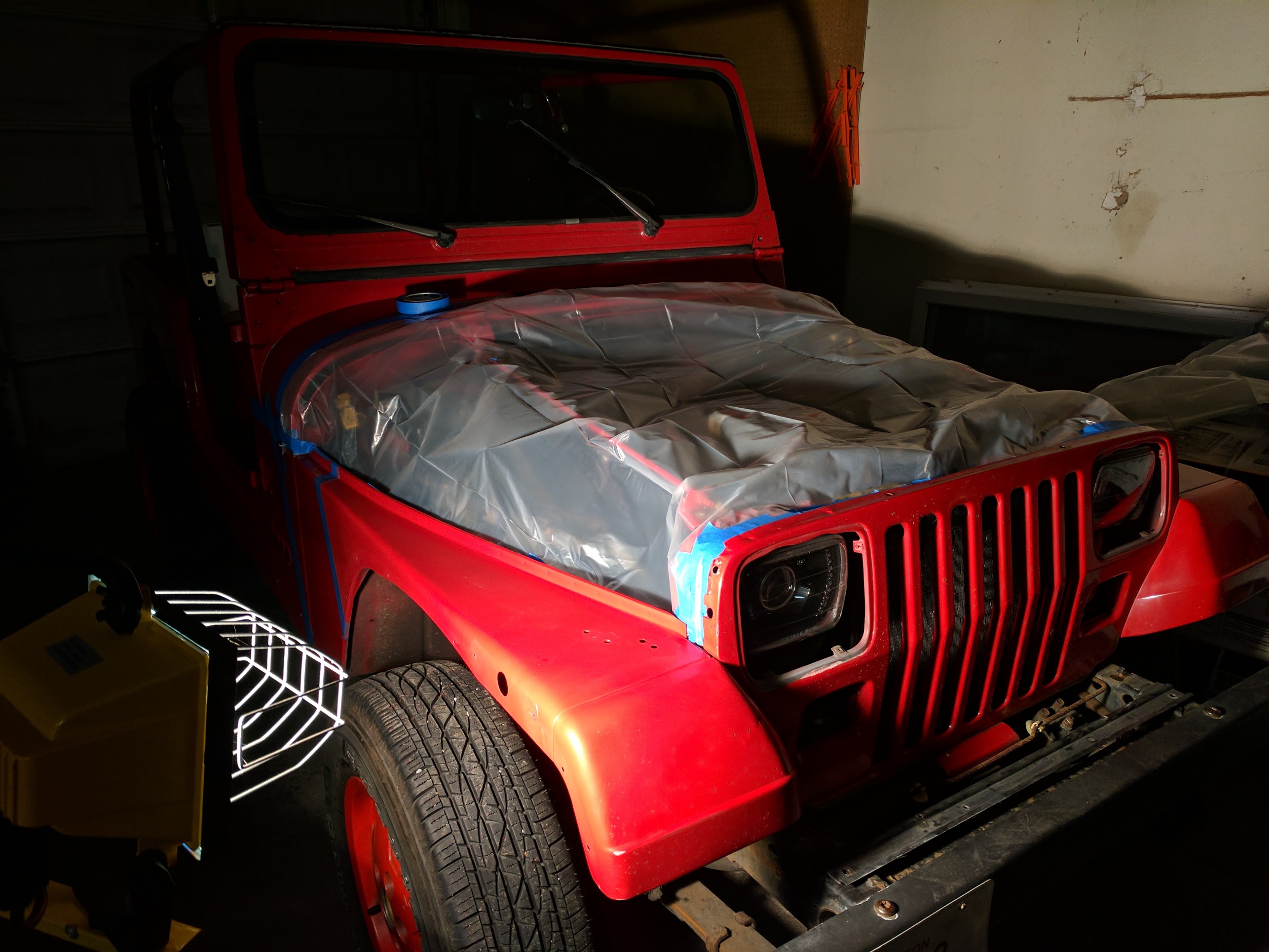 I put Red Barron in the garage I plan on painting her in so I've got about a week to pull apart the interior and sell all the tan islander parts I've got on craigslist. Then hit the Jeep junkyard for the Sahara Parts.