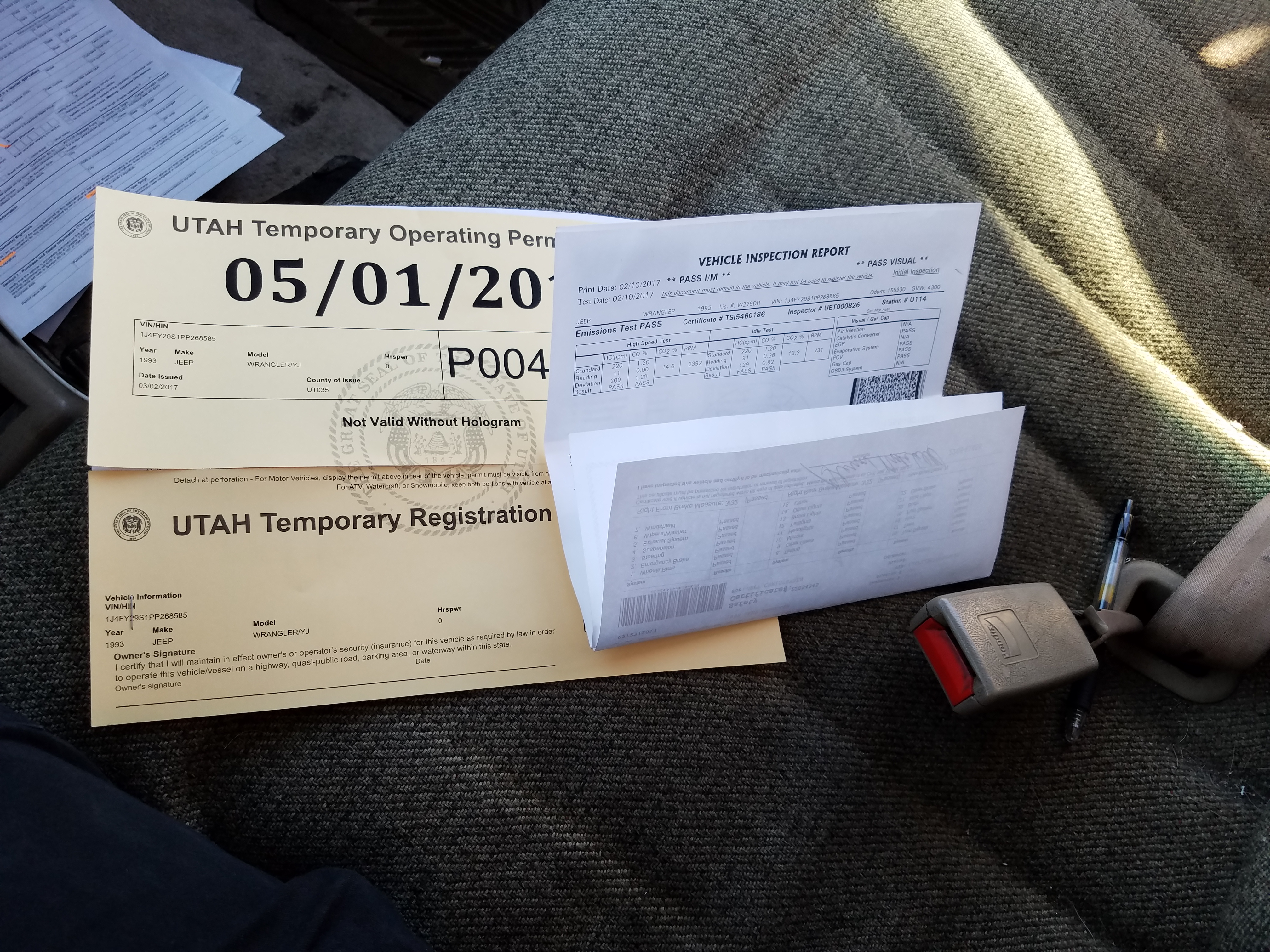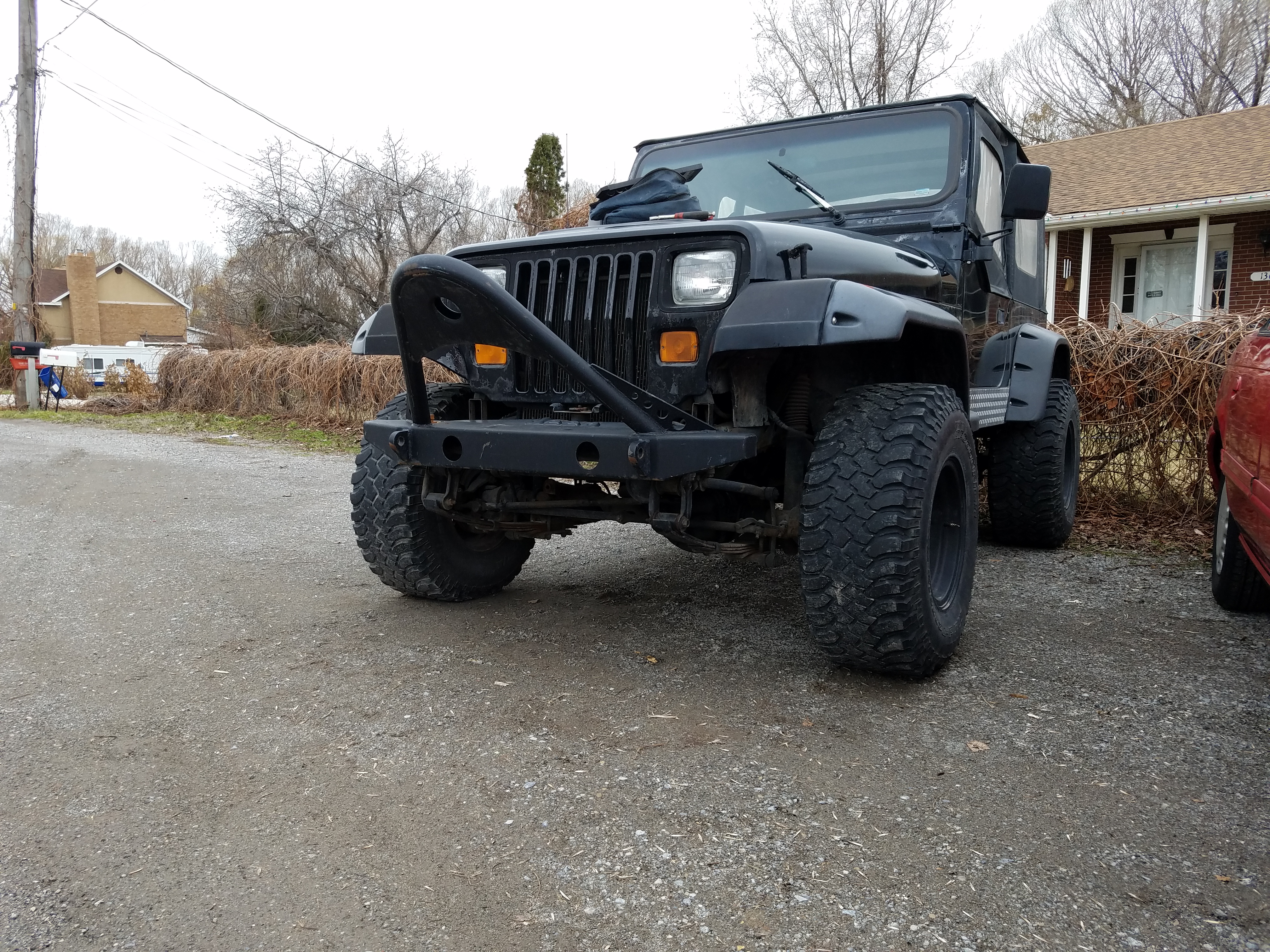 Well registration day wasn't without its moments. I got off work early to go get it done, everything was going good i was in my Jeep driving on the freeway to the dmv when my rear driver side tire came off. I pulled off to the side of the shoulder and watched my tire tear off across 5 lanes of traffic and dissappear, luckily no accidents happened! I called a friend to come help me and went to fetch my runaway tire. I found my tire off the side of the freeway down on the state Road, it had bailed off the bridge section of the freeway and landed against a fence. My friend picked me up and we got the jeep to his house, I took his truck and went and finished registration just before they closed for the day. So I owe my grandpa a wheel but otherwise the jeep is good still.