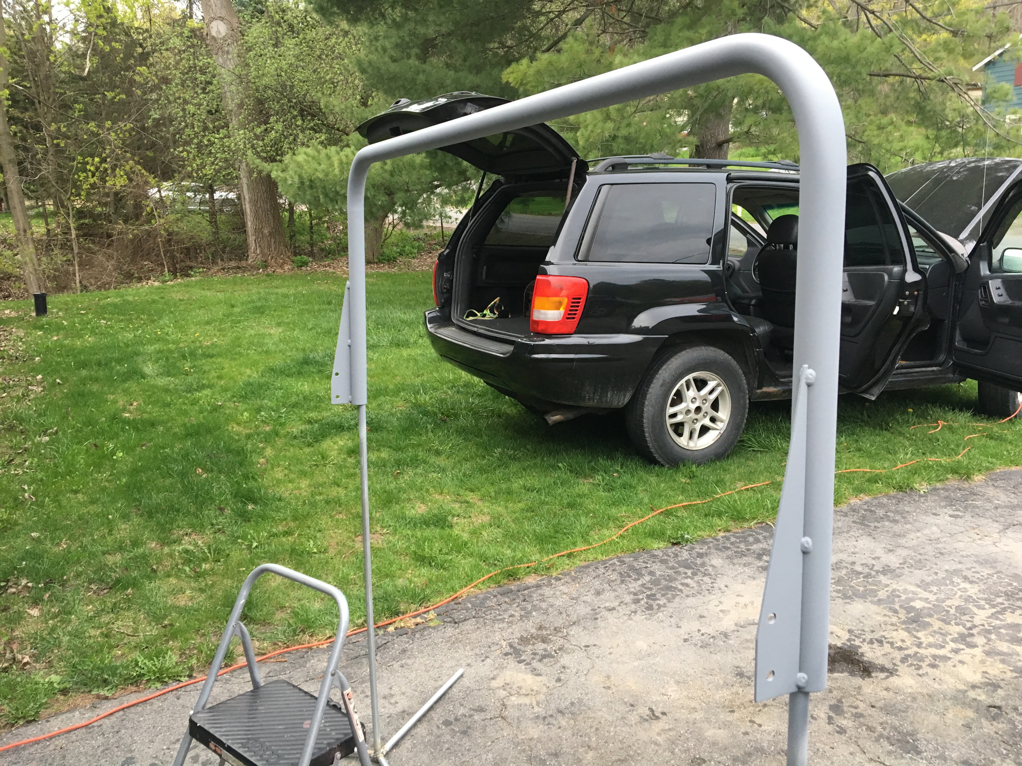 I'm also painting the light bar. I couldn't figure out a good way to mount it for paint, so I welded together some conduit tube to make a paint stand.