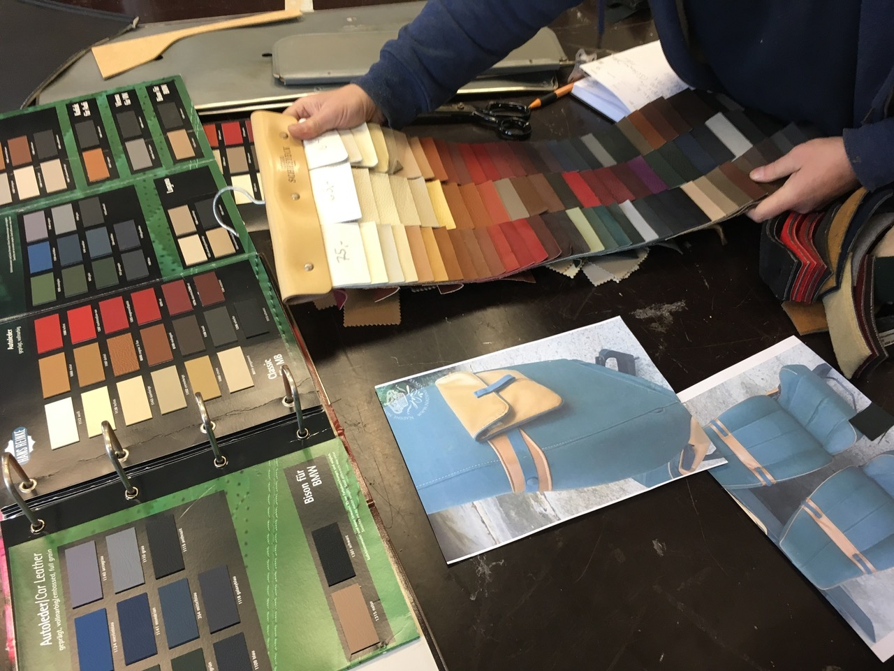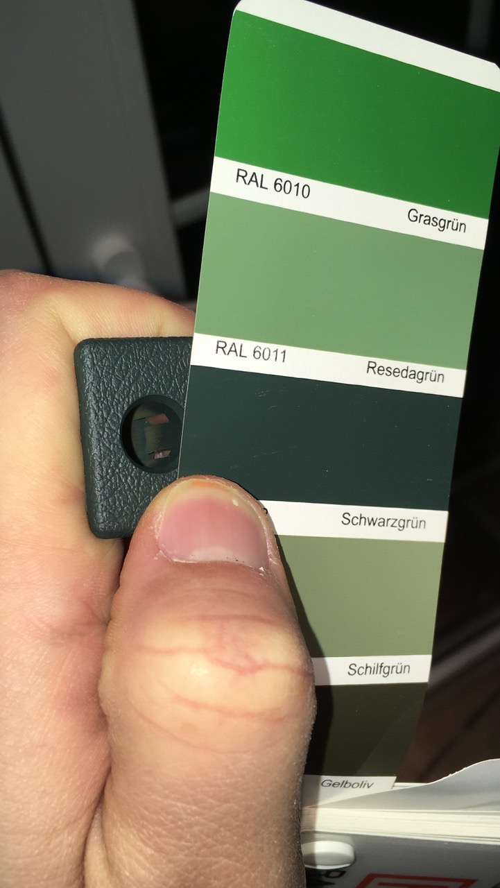 I was able to find a little new, original interior part with the right Sahara-interior green-tone and so we managed it to arrive safe to me :) with that it was easy to match the right color :D