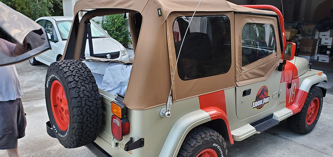 The rest of the install went well. We had left the canvas top and windows in the sun to help with the final zipping preparations. Not bad for a day's work. Jeep 18 is rain ready. Oh, also upgraded the stereo with Bluetooth!