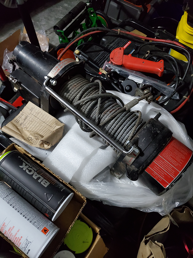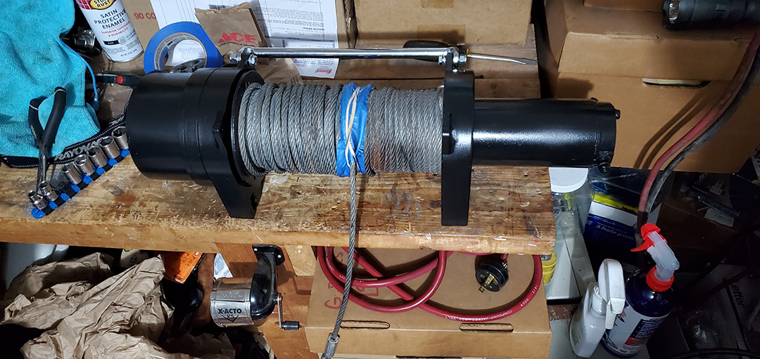 Dwight supplied me with the winch but it was in need of a little TLC. Time for some cleaning, sanding, greasing, cleaning, spooling, and painting.