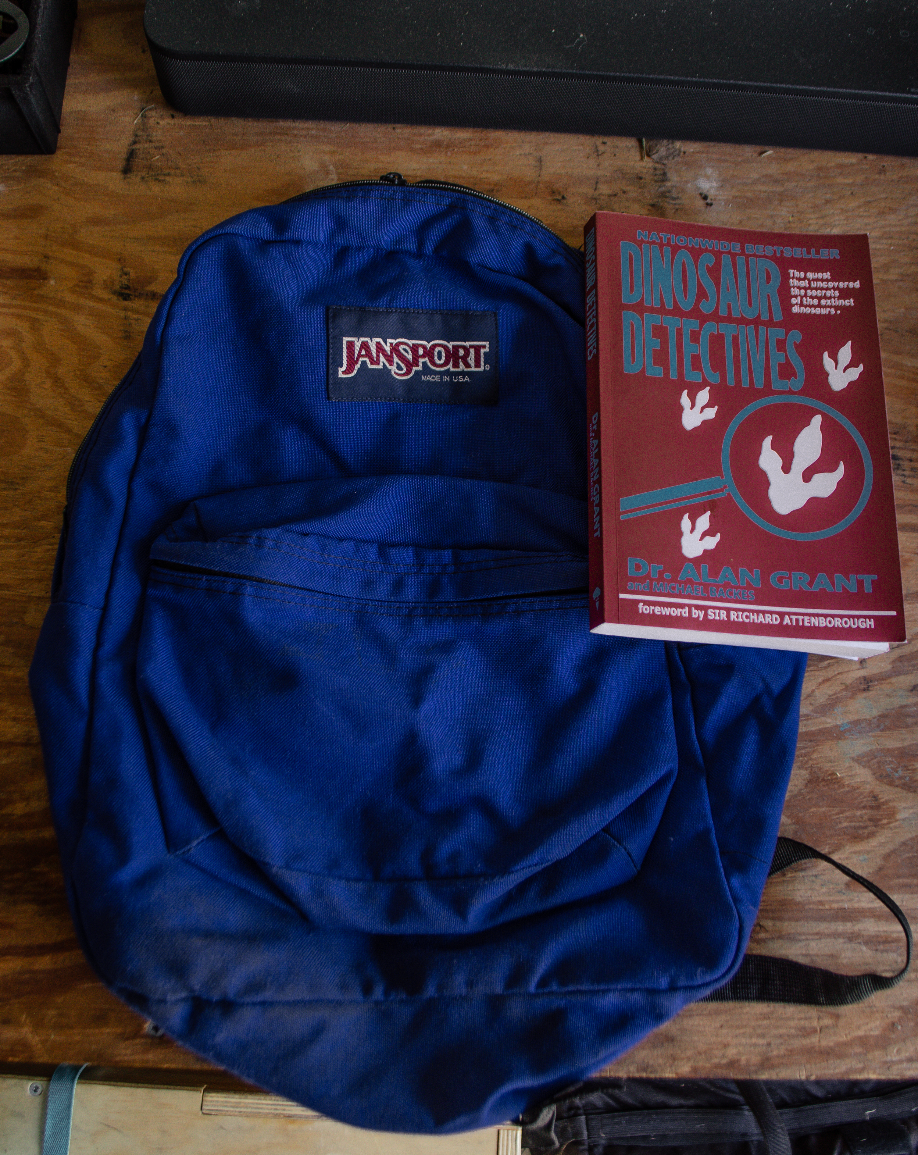 Picked up a Vintage Jansport backpack off eBay. This one I would say is about 95% accurate. Correct color and "MADE IN USA" on the tag. However, after looking at frame by frame images of the movie, it seems like the backpack zipper is supposed to go completely down on each side. The one I have stops halfway. Not sure why there are 30 different versions of the same backpack, but I figured this one would do as a close enough stand in until I can find the 100% accurate one. I also believe the tag on the backpack in the film is a little more "rectangular" than this one.