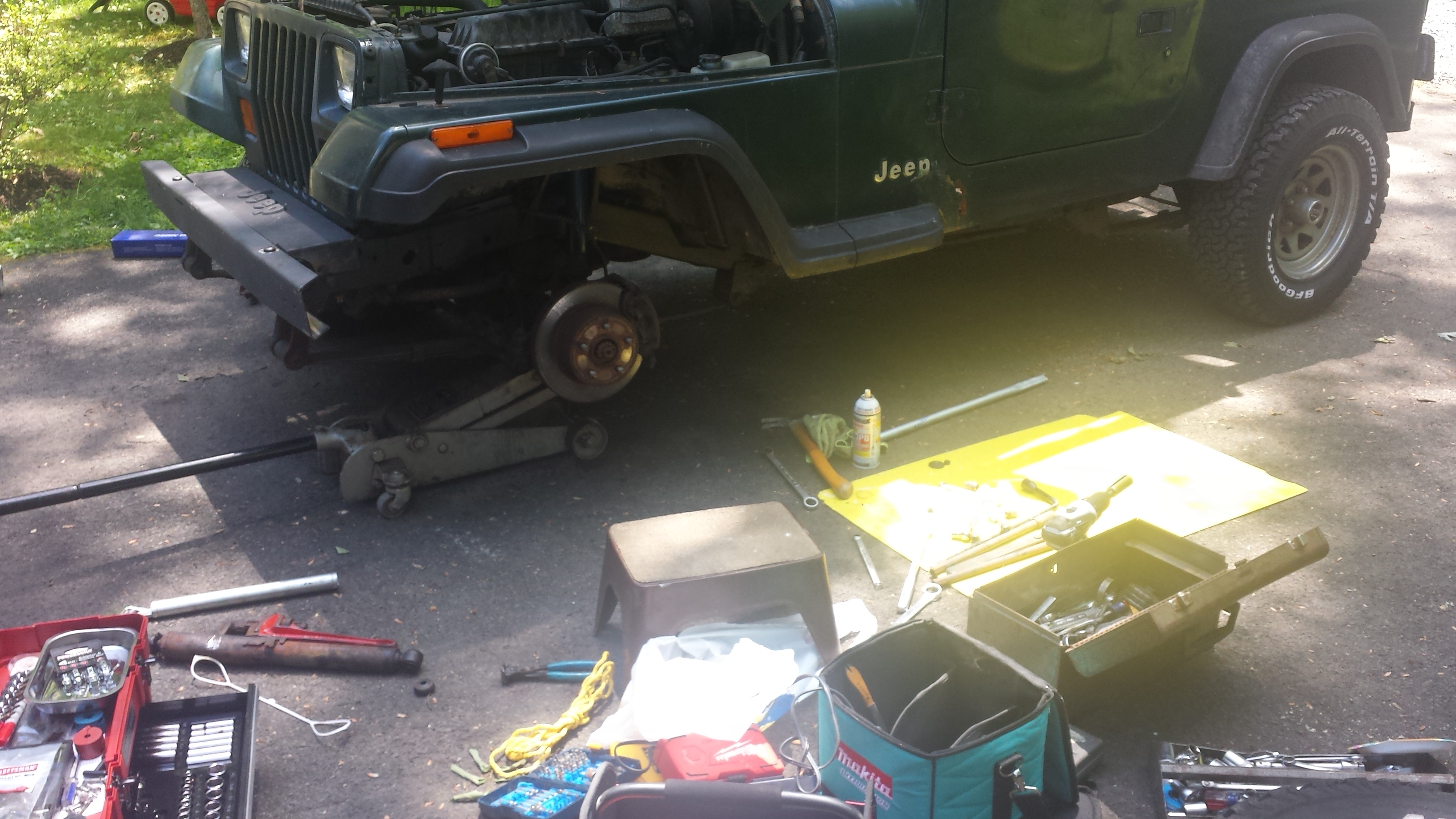 So I must admit, I have been lurking on this site for quite a while and not posting. A couple months ago I was able to pick up a 94 standard Wrangler (not sahara) with the full intention of making it into a JP jeep! I have to say, when I started, some of it was in rough shape. Some pretty bad rust spots on the pan. The frame was in really good shape though. However, I got the car to really learn how to work on it myself and make it a good project so I was happy with that! Plus it was the right price haha.
