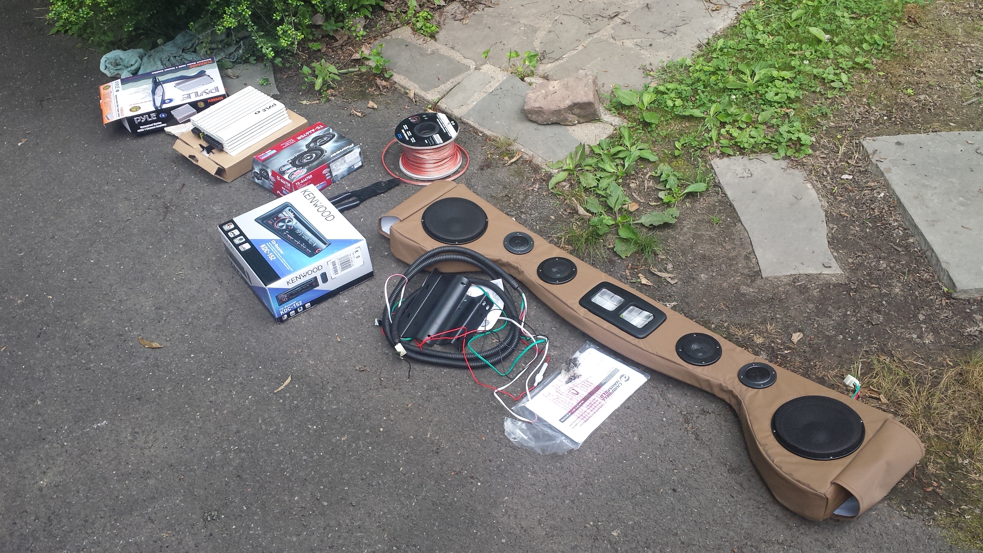 And of course even if the jeep looks bad on the outside (for now), it makes it all okay if your driving around with a good sound system. So next of the list was installing all these components. I got a decent head unit, some 200 watt 3 way speakers in the front, a 3 way speaker bar for the roof and an amp to run them all through. i ran 12 gauge wire throughout the whole car so i wouldn't loose any quality. this took me pretty much a whole day but was well worth it!