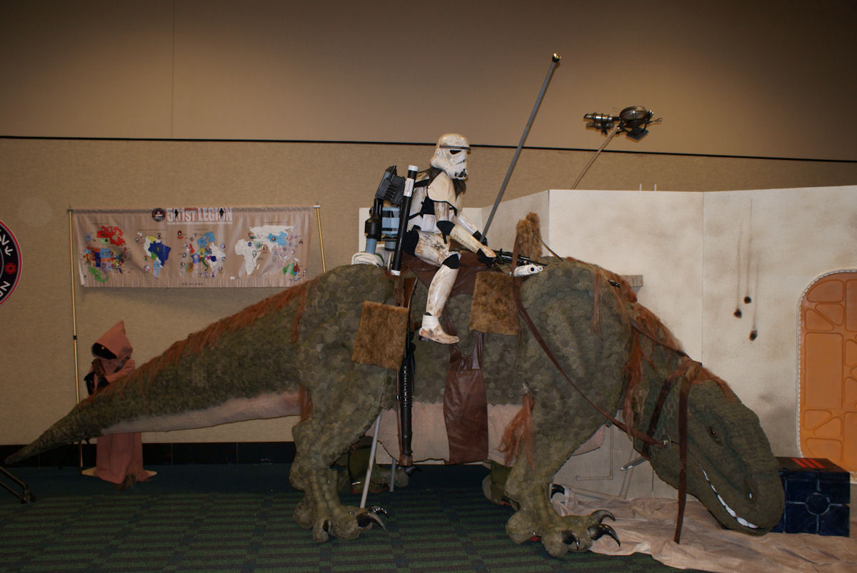 An old thread, but I noticed that I never posted a photo of the completed costume/prop as requested. (I had been absent quite awhile as I had trouble logging in). Here it is, at least the original Star Wars version. It is a functional two person costume, and when walking the tail sways realistically and leg movement goes to the top of the shoulders as the human feet fit into the creature's feet. The mouth opens (with teeth and tongue) and the head turns and raises. This costume won the "Best of Show" at Star Wars Celebration VI in Orlando and since then has appeared at many conventions.